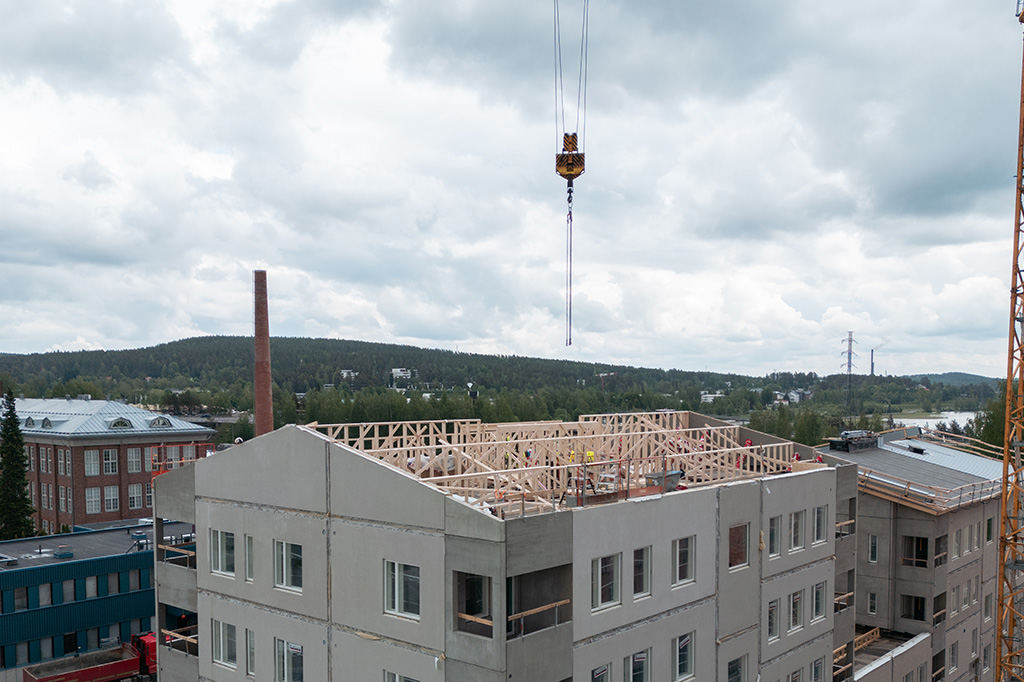 Jyväskylään rakentuneessa kerrostalokohteessa Necon kattoelementtiratkaisut nopeuttivat rakentamista ja selkeyttivät työmaan hallintaa. Toteutus tehtiin tiiviissä yhteistyössä asiakkaan kanssa ja tavoitteenamme oli tuoda elementoinnilla mahdollisimman paljon lisäarvoa rakentamiseen.
