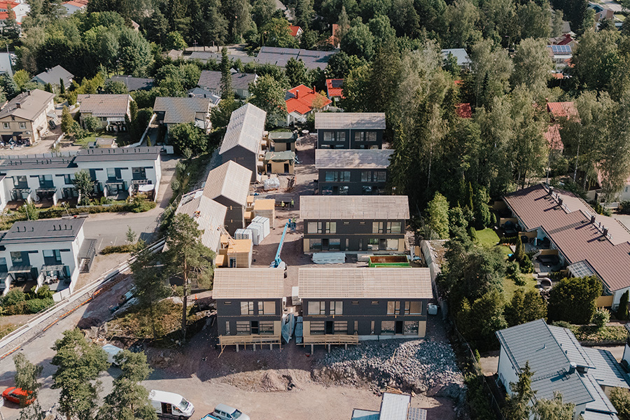 Espoon keskustaan toteutettu perheasuntokohde osoitti, miten erillis- ja paritalohanke voidaan viedä läpi hallitusti tiiviissä kaupunkiympäristössä. Neco toimitti kohteeseen noin 3300 neliömetriä mittatarkkoja seinäelementtejä, joiden avulla rungon rakentaminen eteni nopeasti ja ennakoitavasti. Kokonaisuus käsitti 17 omistusasuntoa ja valmistui palvelujen ja liikenneyhteyksien välittömään läheisyyteen 2025.