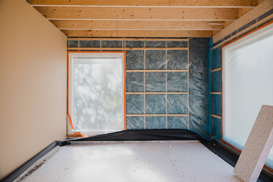 3. Sisäpuoli valmiina seuraavaan vaiheeseen Kuvassa seinäelementti sisäpuolelta runkovaiheen lopussa. Viimeisimpänä pintana näkyvät höyrysulkumuovi ja koolaukset, jotka luovat selkeän ja siistin lähtökohdan seuraaville sisätyövaiheille.