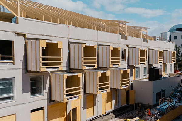 Teollinen esivalmistus toi parvekkeiden toteutukseen tasalaatuisuutta ja sujuvoitti työmaavaihetta. Tutustu hankkeen työmaakuviin. Esittelemme CLT-parvekkeiden asennusta ja sitä, miten valmiit parvekkeet istuvat osaksi kerrostalohanketta ilman ylimääräistä säätöä tai työmaalla tehtäviä rakenneratkaisuja.