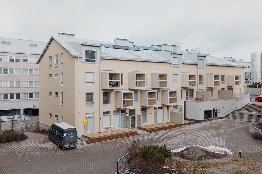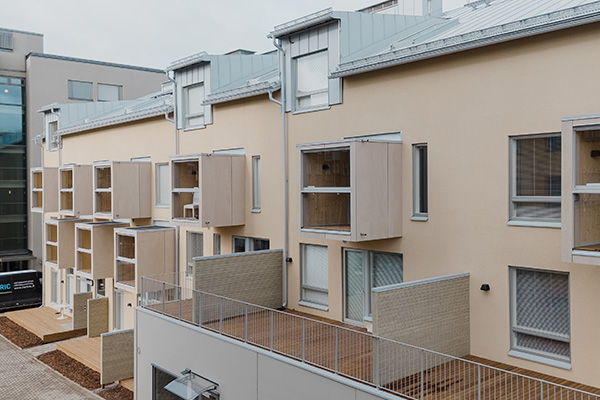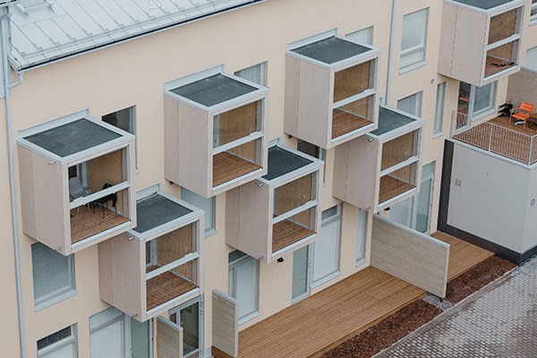 Toteutamme parvekkeet joko puurunkoisina tai CLT-rakenteella. Voimme lisäksi verhoilla parvekkeet rakennuksen muun verhoilun mukaiseksi sekä ulko- että sisäpuolelta.